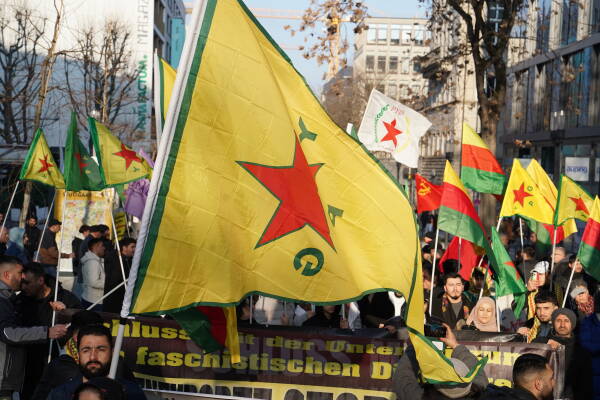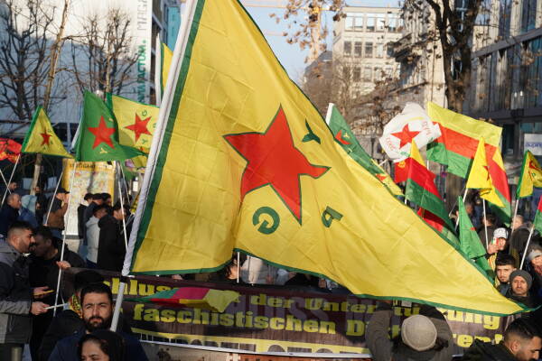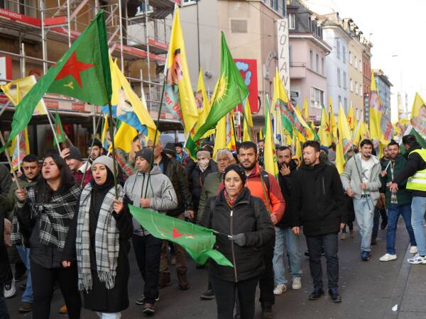 Yüzlerce Kürdistanlının katılımıyla gerçekleşen eylemde, sloganlar eşliğinde Wilhemsplatz meydanına doğru yürüyüşe geçildi.