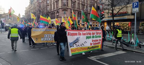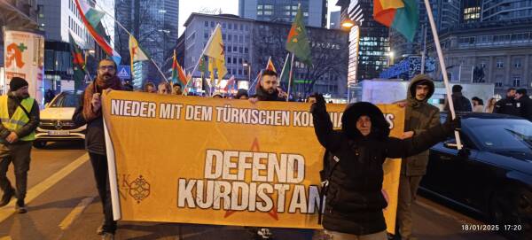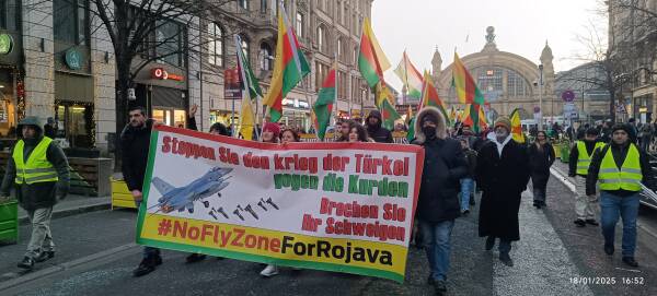 Almanya’nın Frankfurt kentinde Kürdistanlılar ve dostları, Rojava'ya yönelik saldırılara karşı yürüdü. KON-MED’in çağrısı üzerine Amara Kadın Meclisi ve bölge meclislerinin organize ettiği yürüyüşte yüzlerce kişi, merkezi tren istasyonunda bir araya geldi. Türk devletinin desteklediği SMO çetelerinin Rojava’ya, özellikle de son 44 gündür yoğunlaşan işgal saldırılarına karşı protestolar gerçekleştirildi.