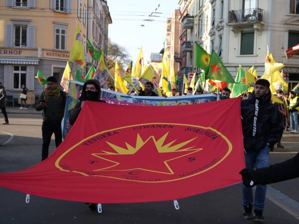 İşgalci Türk devletinin Rojava’ya dönük saldırıları ve Önder Apo’nun mesajını sahiplenmek için Kürt gençlik örgütleri Tevgera Ciwanên Şoreşger (TCŞ) ve Jinên Ciwan ên Tekoşer (TekoJIN) öncülüğünde İsviçre’nin Zürih kentinde bir yürüyüş düzenlendi.