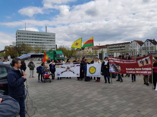İngiltere’nin Brigton şehrinde yaşayan Kürdistanlılar ve dostları 25 Nisan’da Şengal’e yapılan saldırıları protesto etti.