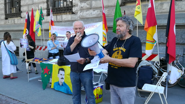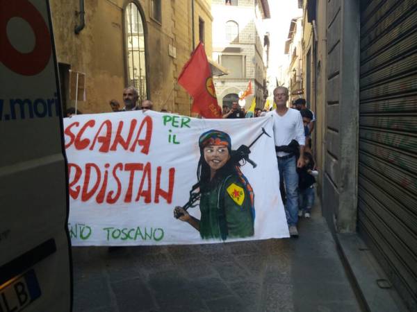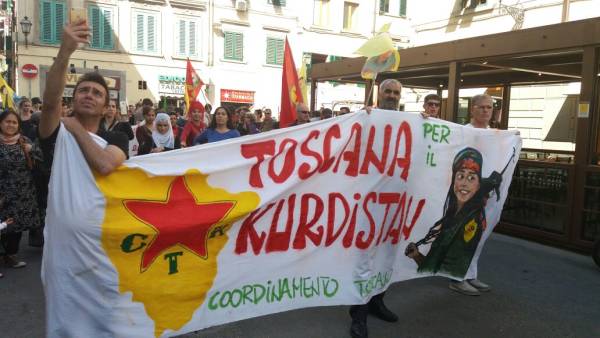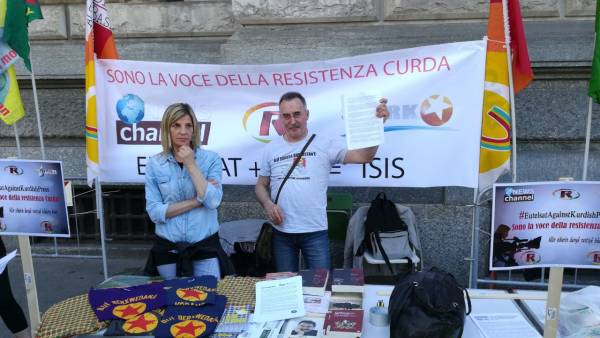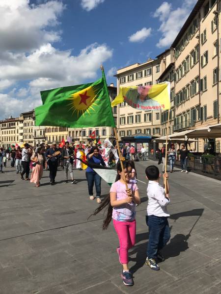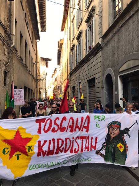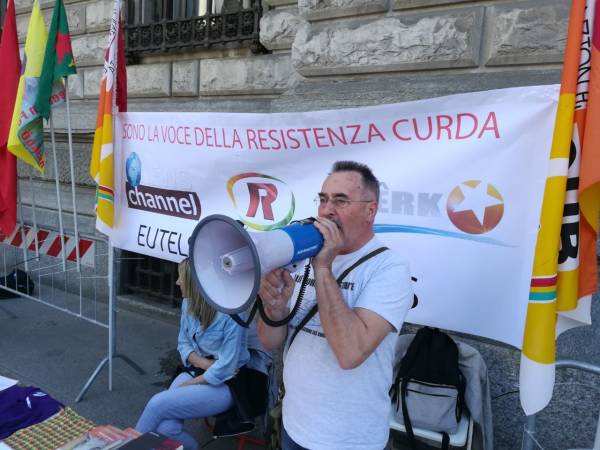 Kürt Komitesi ve İtalyan dost kurumlar tarafından organize edilen yürüyüşte kurum temsilcileri birer konuşma yaparak "Türk devleti Rojava'da katliam yapmaya devam ediyor ve Kürtlerin TV kanallarını kapatıyor. Avrupa ise sadece seyrediyor ve Türkiye'ye elindeki mülteci kozunu kullanarak Kürt Kanallarının kapatılmasını istiyor” denildi.