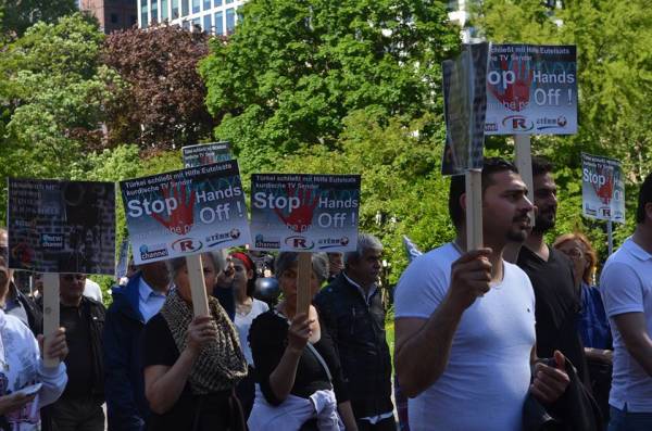 Almanya’nın Hamburg kentinde de Eutelsat protesto edildi.