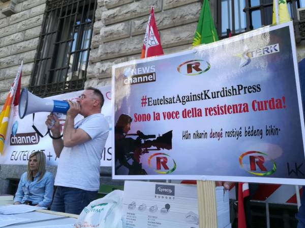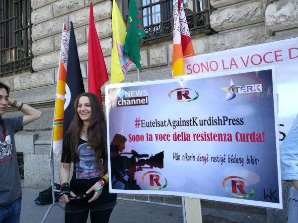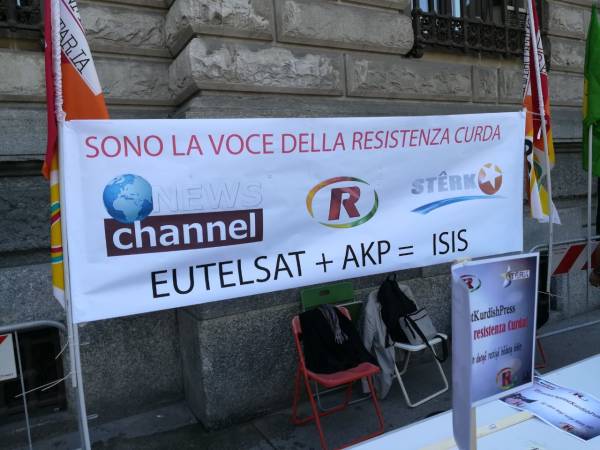 İtalya’nın Milano kentinde Tiyatro Meydanı’nda bir araya gelen Kürdistanlılar ve dostları Eutelsat’ın kararını kınadı. Bu kararın hukuksuz ve faşizan bir uygulama olduğuna dikkat çekilen eylemde, “News Chanel, Stêrk TV, Ronahi TV Kürt direnişinin sesidir" yazılı pankart ve dövizler taşındı.