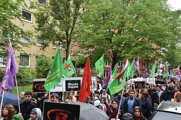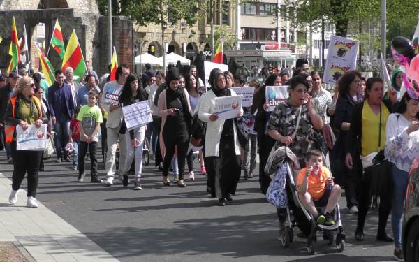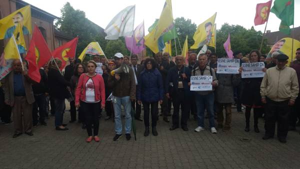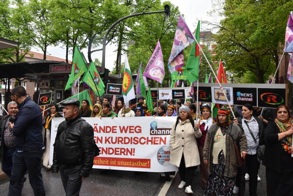 Hamburg Rojbin Kadın Meclisi’nin bildirisini ise Leyla Kaya okudu. Erdoğan’ın politikalarına hizmet eden bu kararı tanımayacaklarını belirtti. Yürüyüşte sık sık, “Katil Erdoğan, özgürlüğün sesini susturamazsınız”, “Yaşasın uluslararası dayanışma” sloganları atıldı.