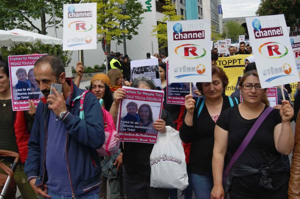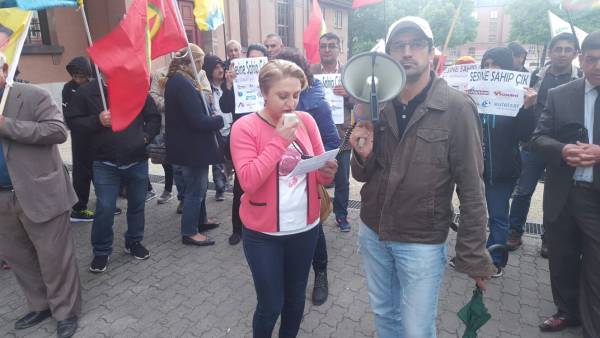 Stuttgart’ta Hayır Platformu adına konuşan Aynur Karakaya da Eutelsat’ı protesto etti, Kürt TV’lerini sahip çıktı, Türkiye’de tutuklanan Alman gazeteci Meşale Tolu’nun hemen serbest bırakılmasını istedi, açlık grevindeki akademisyenlere sahip çıktı.