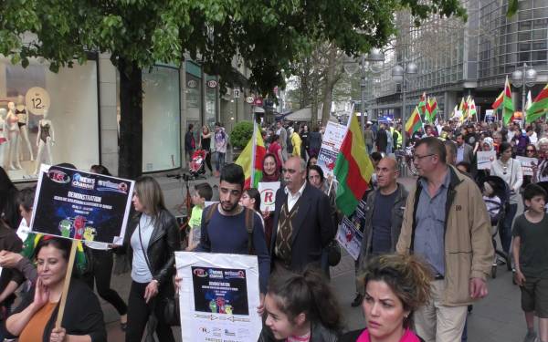 Avrupa ve dünya kamuoyunun bu konuda artık adım atması gerektiği de vurgulanan eylem, “Viva Öcalan”, “Viva Kürdistan " sloganları ile Cumhuriyet meydanında sona erdi.