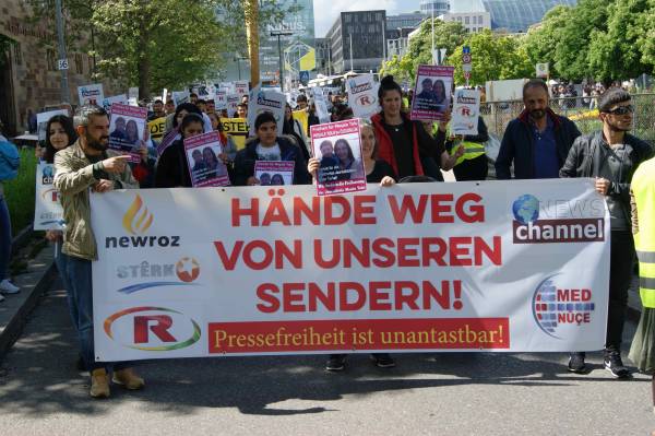 Almanya Demokratik Kürt Toplum Merkezi (NAV-DEM)’in çağrısıyla, Stuttgart’ta Hayır Platformu, HDK Stuttgart ve Demokratik Güç Birliği’nin birlikte organize ettiği yürüyüş ve mitingde, Eutelsat tarafından yayını durdurulmak istenen News Channel, Stêrk TV ve Ronahî TV'ye sahip çıkıldı. Eutelsat protesto edildi.