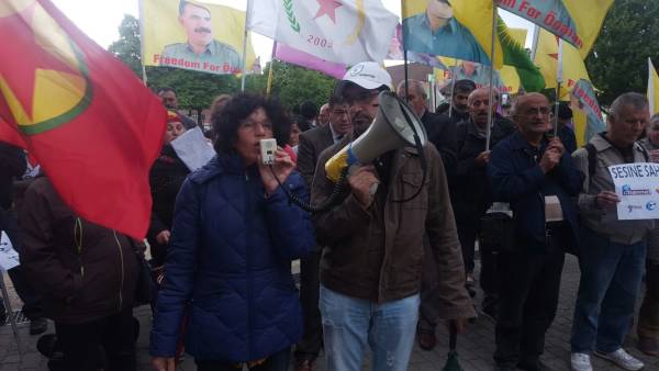 Kitle adına Dem-Kurd Eşbaşkanı Elif İşcan Almanca hazırlanan bildiriyi okudu. Sık sık sloganların da atıldığı eylemde Kürt Halk Önderi Abdullah Öcalan’ın posterleri, PKK bayrakları ve Almanca hazırlanan pankartlar asıldı.
