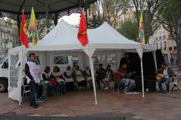 Fransa’nın Marsilya kentinde Canebierre Meydanın’da Türkiye ve Kürdistan cezaevlerindeki açlık grevi direnişine destek amacıyla yapılan çadır eylemi devam ediyor.