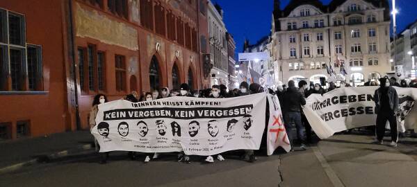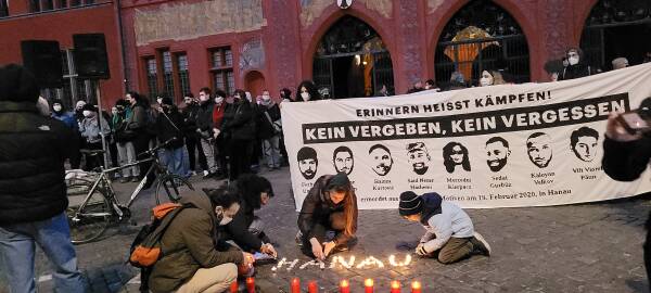 Akşam saat 18.30'da kanton parlamentosu önünde (Markplatz) bir araya gelen eylemciler Hanau katliamında yaşamını yitiren Ferhat, Said Nesar, Hamza, Vili, Mercedes, Kaloyan, Fatih, Sedat ve Gökhan'ın isimlerini okuyarak onlar için burada mumlar yaktı.