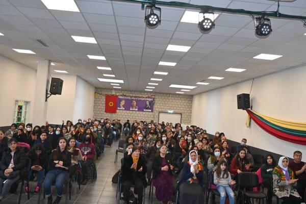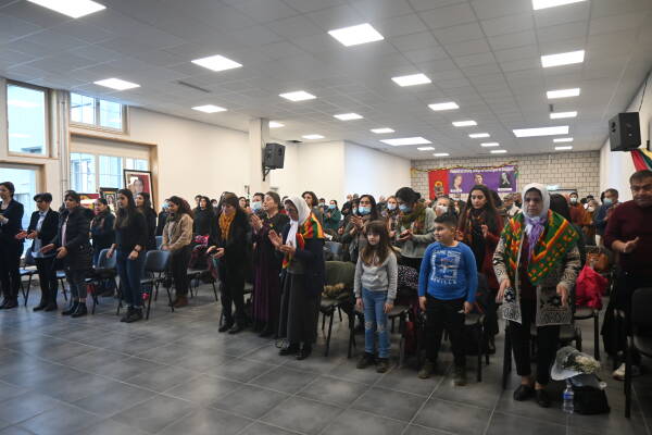 Basel Demokratik Kürt Toplum Merkezi etkinlik salonunda yoğun bir katılımla gerçekleştirilen etkinlik, üç fidan şahsında bir dakikalık saygı duruşuyla başladı.