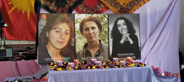3 Kürt kadın devrimcinin mücadele yaşamlarından kesitlerle katliamın detaylarının aktarıldığı etkinlikte, sanatçılar Nûarîn ve Gulan'ın müzik dinletisi sundu. Gazeteci Güler Yıldız'ın da şiir dinletisi sunduğu etkinlik “Jin, jiyan, azadî”, “Sara, Rojbîn, Ronahî” sloganlarıyla sonlandırıldı.