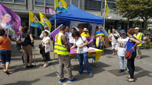 Kadınların öncülüğünde gerçekleşen eylemde; çadır kurularak Kürt Halk Önderi Abdullah Öcalan'ın koşullarını anlatan Almanca bildiriler dağıtıldı. Öcalan lehine atılan sloganlarla eylem 3 saat boyunca devam etti.