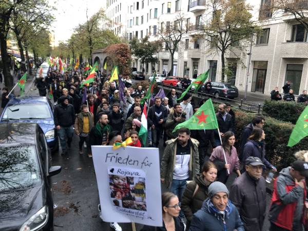 Berlin’deki 2 Kasım Dünya Rojava Günü yürüyüşü birçok halkı buluşturdu. Yürüyüş korteji hükümet ortağı SPD’nin genel merkezinde yürüyerek Almanya’nın işgal saldırısı karşısında tutumunu kınadı.