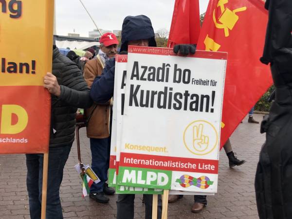 Partiya Komünist Almanya adına konuşan Serhat Çetinkaya ise “Rusya ve İran Kürtlere karşı bir olmuş, yardım edeyim derken daha çok Erdoğan’ın önünü açıyorlar. Kürtleri işgal ettikleri bölgelerden çıkartmak istiyorlar. Hepimiz Rojava için bir olmalıyız ve daha çok destek vermeliyiz” çağrısını yaptı.