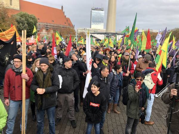 Almanya’nın başkenti Berlin’de 2 Kasım Dünya Rojava Günü için binlerce kişi öğlen saatlerinden itibaren kent merkezindeki Alexdarplatz’da toplanmaya başladı. Onlarca kurum ve kuruluşun destek verdiği gösteriye kalabalık bir Alman kitlesinin katılımı dikkat çekti.
