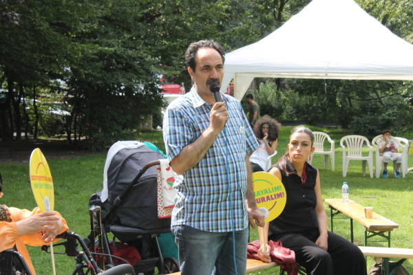 Nöbet eylemi sırasında açık oturum yapıldı. HDK-Berlin Eş Sözcüsü Erkin Erdoğan, buradaki konuşmasında, Türkiye'de OHAL altında sürdürülen diktatörlük rejimin kanla beslendiğini ifade ederek, "Bu rejim demokratik hakların ve kazanımların kökünü kurutarak ayakta kalmaya çalışıyor. Buna engel olmak isteyen herkesi yok ederek sonuç almaya çalışıyor. Halklarımız diktatörlüğe karşı zindanda, sokaklarda, alanlarda mücadele ediyor. Bu anlamda HDK-Berlin olarak HDP'nin ülkedeki nöbet eylemlerine destek vermek için buradayız" dedi.