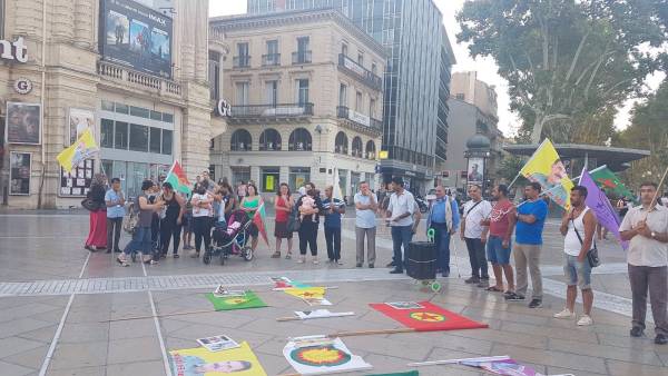 Kadın hareketi öncülüğünde organize edilen anma etkinliği Montpellier’in en işlek meydanı olan COMEDIE’de yapıldı.