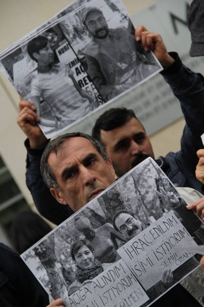 Açıklamada ilk olarak söz alan Barış Akademisyenlerinden Engin Sustam, “Nuriye ve Semih’in desteğinize ihtiyacı var” diyerek başladığı konuşmasında, 63 günden beridir süren açlık grevinin geldiği boyuta dikkat çekti. Türk devletinin anti- demokratik uygulamalarına değinen Sustam, Türk devletinin Erdoğan öncülüğünde Kürdistan’da yaptığı katliamları da hatırlattı.