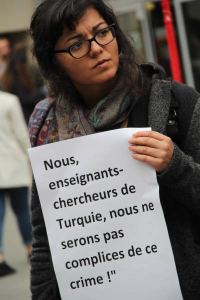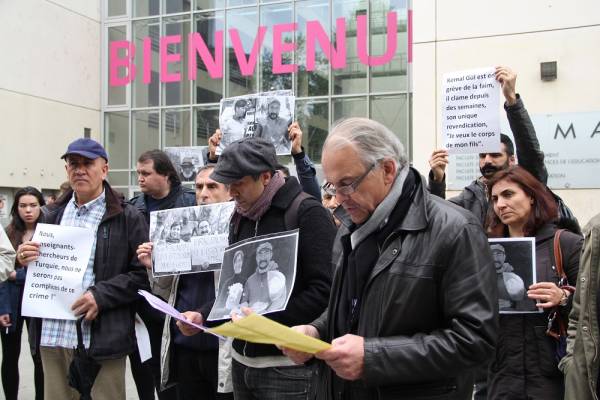 Gülmen ve Özakça’nı yaptığı eylemem dikkat çeken dövizlerin taşındığı eyleme Barış Akademisyenlerinden Engin Sustam, Cenevre Belediye Başkanı Remy Pagani’in yanı sıra çok sayıda öğrenci katıldı.