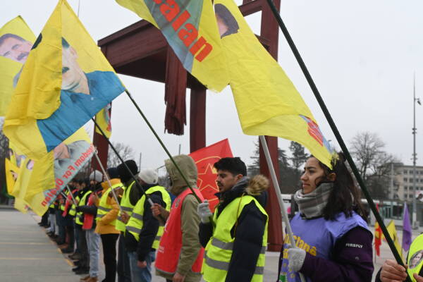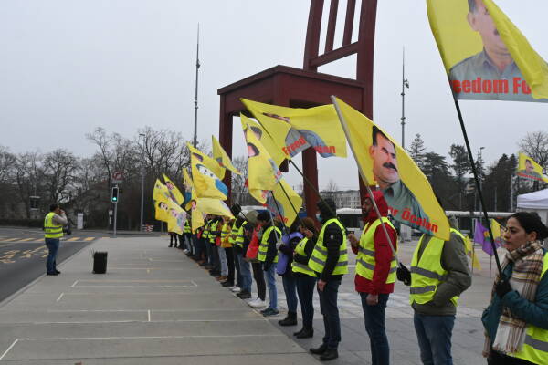 “Dem Dema Azadiyê ye, Azadiya Rêber Apo Azadiya me ye” hamlesini sahiplenen Cenevre kentinde yaşayan Kürdistanlıların 25 Ocak 2021'den bu yana her çarşamba düzenledikleri oturma eylemi sürüyor.