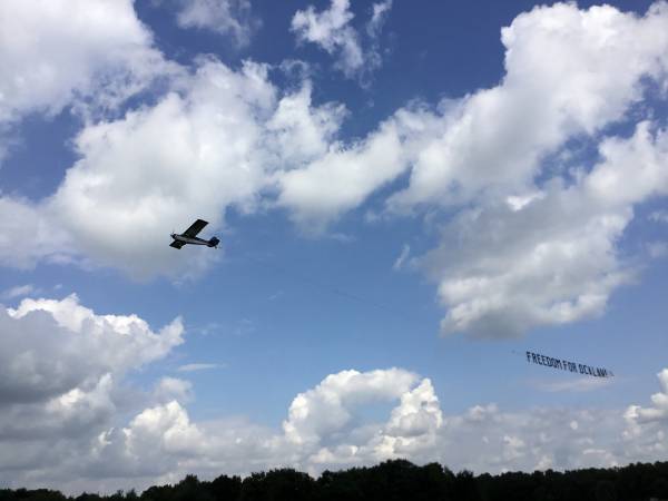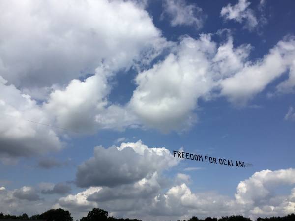 Her üç kentin semalarında “Freedom for Ocalan” pankartı gezdirildi.