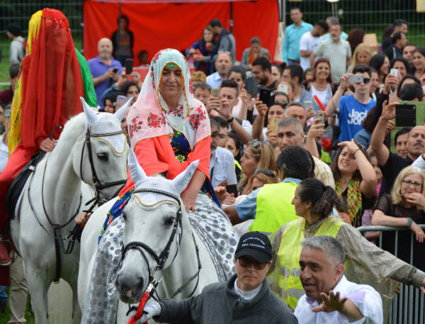 Binlerce kişinin katıldığı festivalde, Dersimli bir çift de düğününü alanda yaptı. Atlar ve yöresel kıyafetlerle festival alanına gelen çift ilgi odağı oldu.