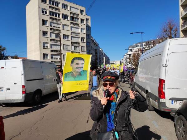 Kadınlar ve gençlerin yoğunlukta olduğu yürüyüşte sık sık “Bijî Serok Apo” , “Bijî berxwadana gelê Kurd” ve “Drancy faşizme mezar olacak” sloganları atıldı.