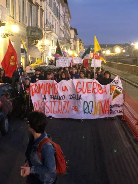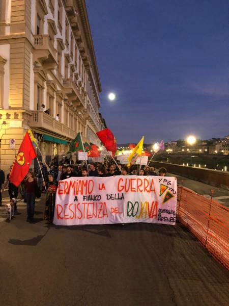 Floransa İstasyon Meydanı'nda bir araya gelen kitle, attıkları sloganlarla Türk devletinin saldırılarını teşhir etti.