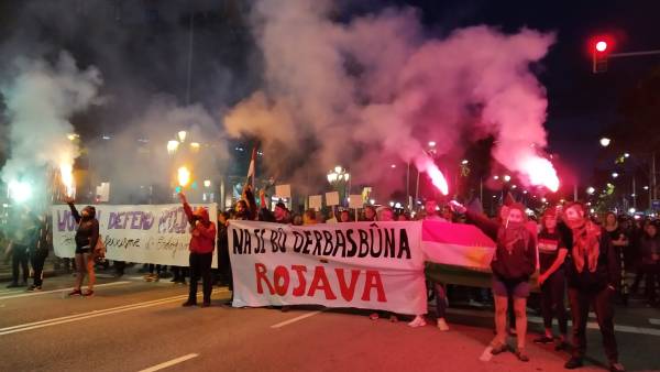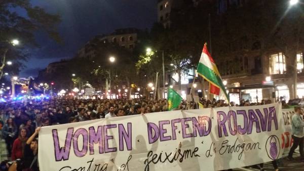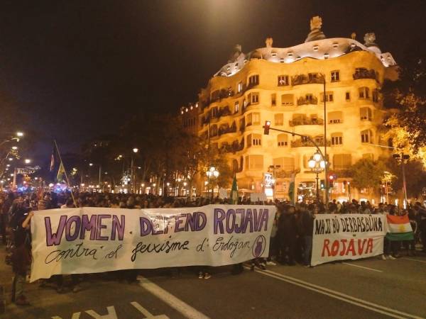 Katalunya’nın Lleida kentinde de düzenlenen bir yürüyüş ile Türk devletinin saldırıları protesto edildi. Yürüyüşe yaklaşık 100 kişi katıldı.