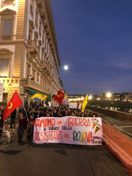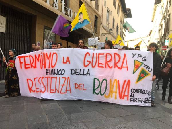 İtalya'nın Floransa kentinde de Kürdistanlılar ve dostları Türk devletini protesto etti.