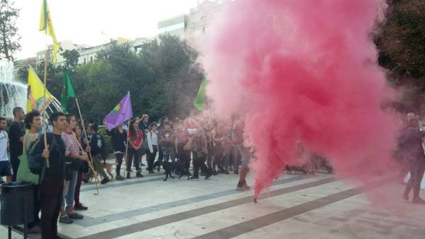 Akşam saatlerinde ise 2 bin kişinin katılımı ile bir yürüyüş düzenlendi. “Kadınlar Rojava’yı sahipleniyor” sloganı ile düzenlenen eylemde 2 saat boyunca yol trafiğe kapatıldı. Eylemde “riseup4rojava” pankartı da taşındı. Türk konsolosluğu önünde eylem sona erdi.