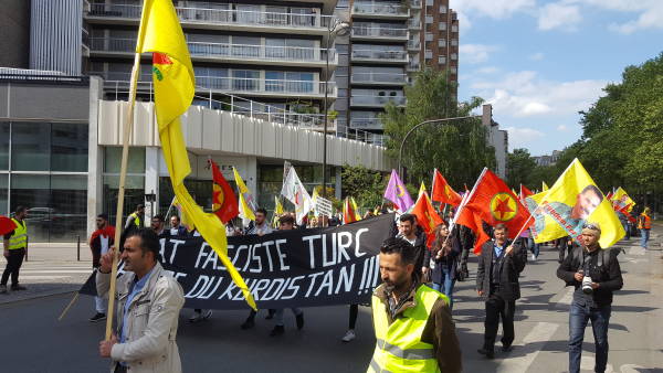 Saat 16.00'da République meydanında başlayan yürüyüşte eylemciler "Faşist Türk devleti Kürdistan'da defol" pankartı açarak "Türk Devleti Şengal ve Rojava'yı bombalıyor " dövizleri taşıdı.