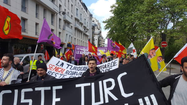 Fransa'nın başkenti Paris'te Kürdistanlılar ve dostlarının katılımı ile binlerce kişi Türk Devletinin Şengal ve Rojava'ya saldırılarını protesto etmek için yürüdü.