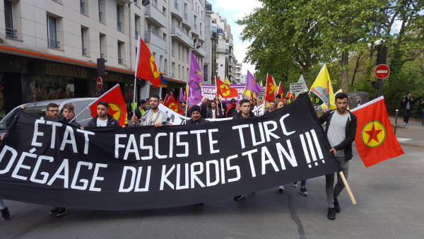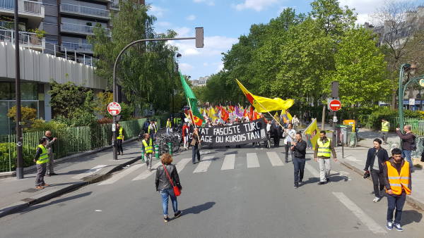 Paris'te binler Türk devletinin saldırgan politikalarını protesto için eylemdeydi.