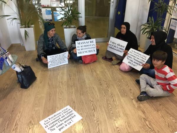 Marsilya Arin Kadın Meclisi tarafından Avrupa Parlamentosu temsilciğinde bir demokratik eylem gerçekleştirildi. Saat 14’te temsilciliğe giren kadınlar burada oturma eylemi yaparken daha sonra yetkililerle görüştü. Şengal ve Rojava’ya yönelik Türk devletinin saldırılarına dikkat çekilen eylemlerde saldırıların uluslararası hukuka aykırı olduğu ifade edildi. 4 saat sonra eylem sona erdirildi.