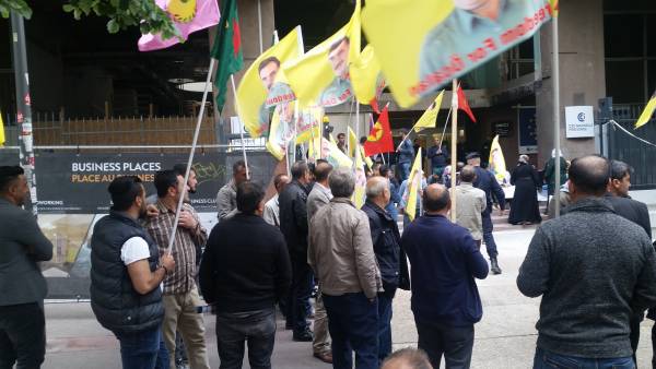 Saat 18.00'de République meydanında yapılan mitingde "Faşist Türk devleti Kürdistan'da defol" Türk Devleti Şengal ve Rojava'yı bombalıyor Avrupa sessiz" pankartları açıldı. Miting boyunca "Katil Erdoğan" sloganları atan eylemciler "Dün Ermeni soykırımı bugün Kürt" dövizleri taşıdı.