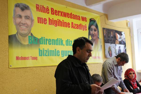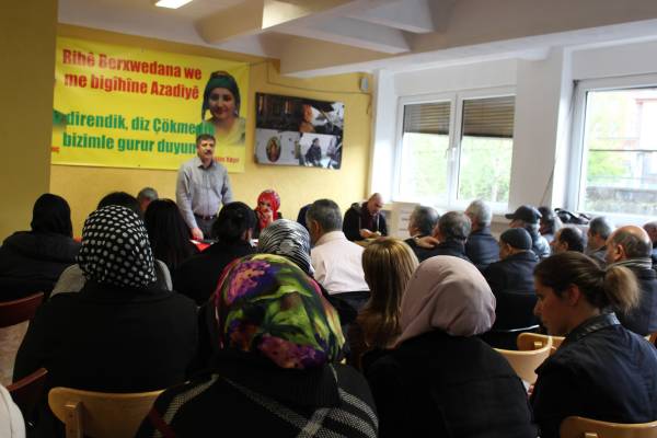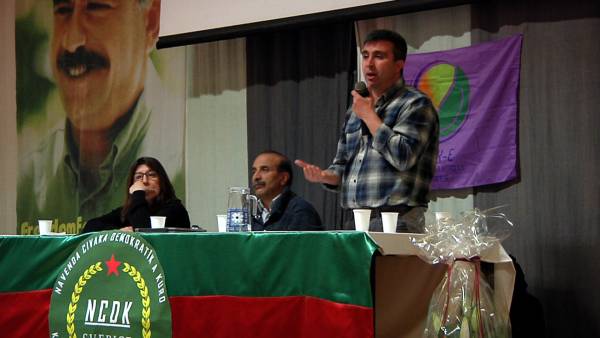 Yüksel Koç, Rojava'daki son gelişmeleri, Türkiye'de referandum sürecini ve tutsakların 60 gün sürdürdükleri açlık grevlerini, Avrupa'da sürdürülen dayanışma etkinliklerini ve Kürdistanlıların örgütlenmelerinin önemini ele alan bir konuşma yaptı.