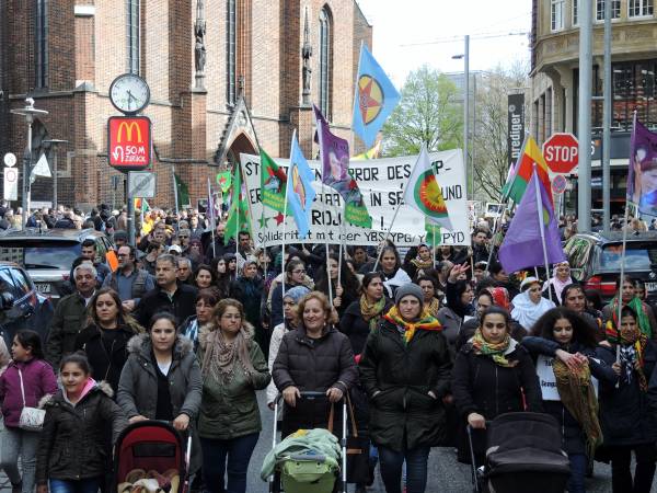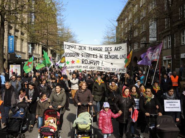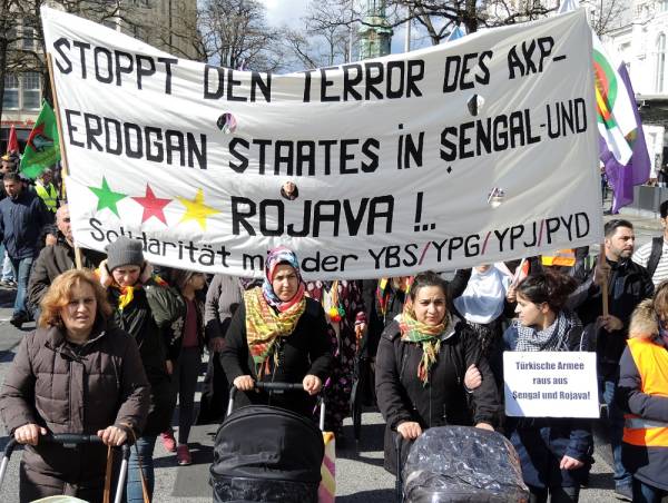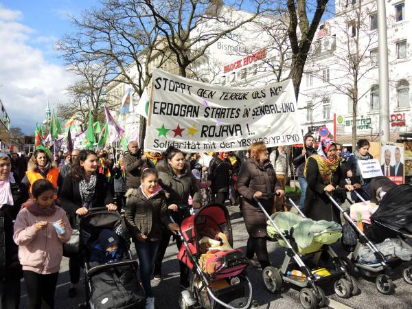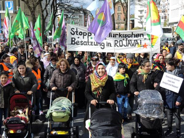 Hamburg Demokratik Toplum Merkezi’nin çağrısıyla Hachmannplatz’da bir araya gelen yüzlerce kişinin katılımıyla bir yürüyüş düzenlendi. Eylemde Hamburg Sol Parti milletvekili Martin Dolzer, NAV-DEM sözcüsü Yavuz Fersoğlu, Rojbin Kadın Meclisi temsilcileri Anja Flach ve Adalet Şare birer konuşma yaptı.