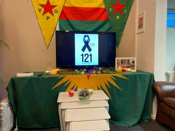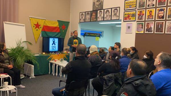 Helsinki Demokratik Kürt Toplum Merkezi’nde (Navenda Civaka Demokratik a Kurd-NCDK) düzenlenen anma, 121 şehit anısına yapılan saygı duruşuyla başladı.