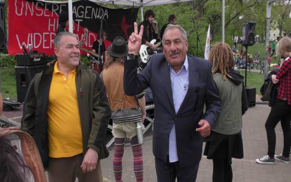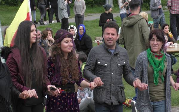 Yürüyüş sabah 11'de Hildesheimın tren garın önünde başladı ve Steingrube’deki miting alanına kadar sürdü. 600 kadar kişinin katıldığı yürüyüe Alman sendikaları ve Sol Parti de destek verdi.