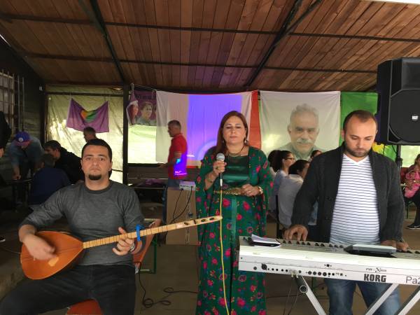PKK Yürütme Kurulu Üyesi Murat Karayılan'ın 15 Ağustos ile ilgili konuşmasının yer aldığı sinevizyon gösterimi sonrası Koma Rojava'dan Ayda, Yusuf ve Hasan'ın stranları eşliğinde halk halaylarla kutlama etkinliğini sürdürdü.