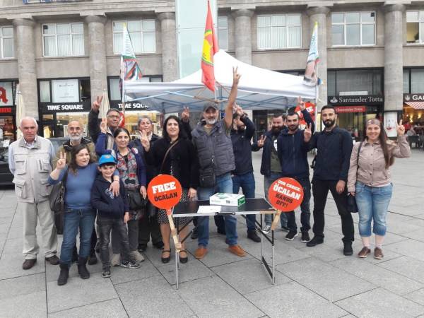 Saat 14.00’te Köln Bahnhofvorplatz’da başlayan eylemde bilgilendirme standını ziyaret eden ziyaretçilere Öcalan’dan haber alınmaması konusunda bilgilendirme yapıldı. Bildiriler okundu ve dağıtıldı.