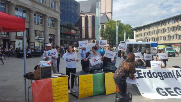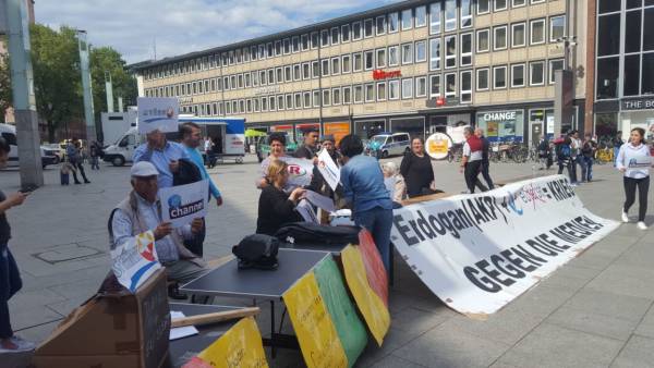 Perşembe gününden bu yana Almanya’nın Köln kentinde düzenlenen eylemi Troisdorf’ta yaşayan Kürdistanlılar devraldı. Köln HBF önünde düzenlenen eylem boyunca Türk devletinin Kürtler, demokratlar ve kamuoyu başta olmak üzere bütün muhalefete yönelik kırımcı politikaları ile Eutelsat’ın işbirlikçi yaklaşımını ele alan bildiriler okundu, konuşmalar yapıldı.