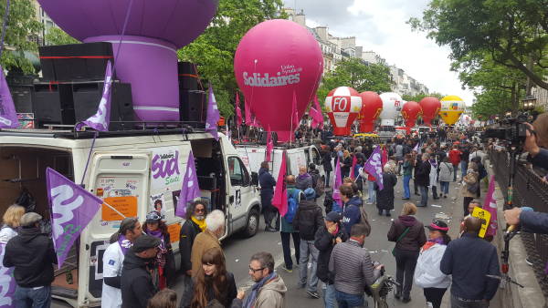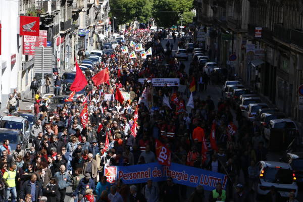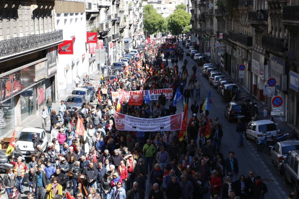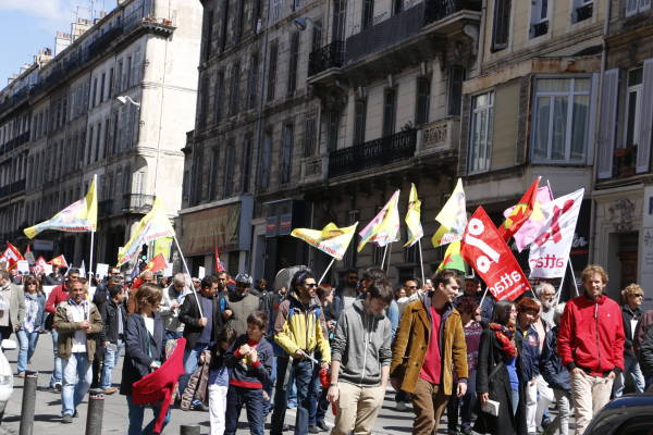 CGT'nın çağrısıyla sabahın erken saatlerinden itibaren Vieux Port Meydanı'nda toplanmaya başlayan binlerce kişi, saat 11:00'e doğru mitingin yapılacağı Castellane Meydanı'na doğru yürüyüşe geçti. Yoğun güvenliğin alındığı yürüyüşte birçok cadde araçlara kapatıldı.