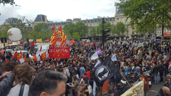 Sabahın erken saatlerinde République Meydanı'nda Fransız sendikalar, Kürt kurumları HDK- Fransa, Halkların Birleşik Devrim Haraketi bileşenleri, Türkiyeli sosyalist devrimci kurumları ve emek örgütleri alanda yerlerini alarak sloganlar ve halaylarla 1 Mayıs'ı coşkuyla kutluyor.