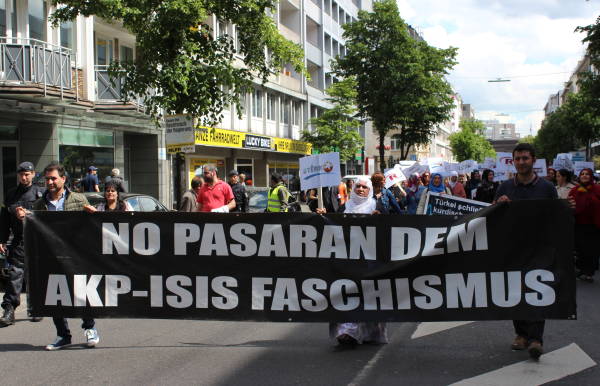 Saat 15.00’da Düsseldorf HBF önünde başlayan yürüyüşe Kürtlerin yanı sıra Türkiye sol hareketleri ile Alman sol kuruluşların temsilcileri de katıldı.