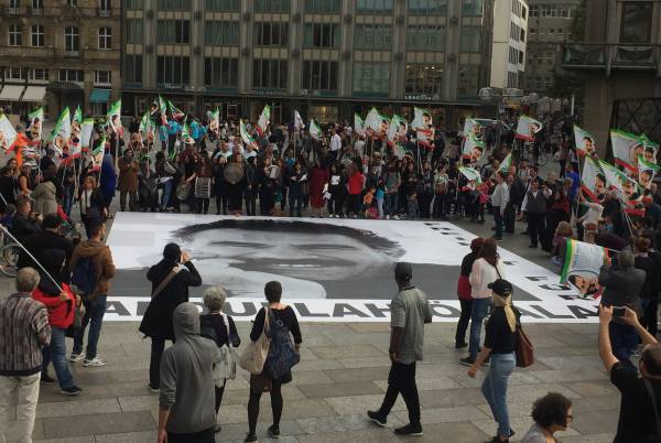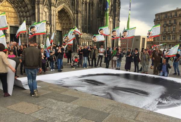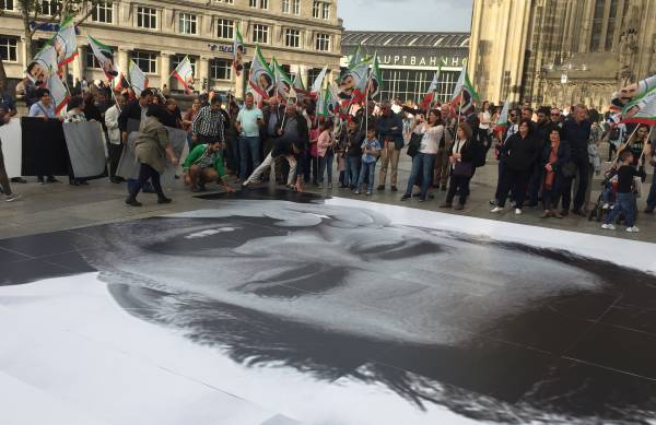 Almanlar ve çevredeki turistlerin yoğun ilgi gösterdiği eylem de sık sık, “Bê Serok jiyan nabe“, "Bi can, bi xwîn, em bi terane ey serok" ve “Bijî Serok Apo“ sloganı atan Kürdistanlılar, 99 parçadan oluşan Puzzle parçaları ile dev bir Öcalan’a özgürlük pankartı oluşturdular.
