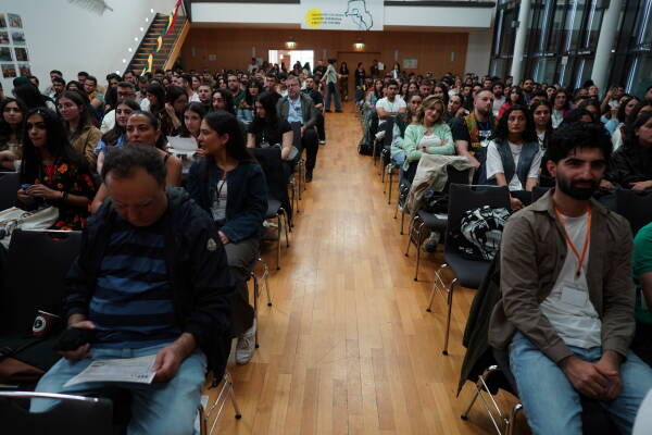 Gençlik kongresi Kürt ulusal marşı Ey Raqip ile başladı, ardından Bakur, Başûr, Rojhilat ve Rojava parçalarında Kürt öğrenci tarihi hakkında sinevizyon gösterimi yapıldı.
