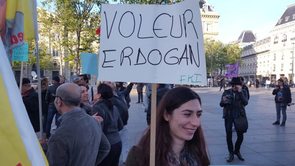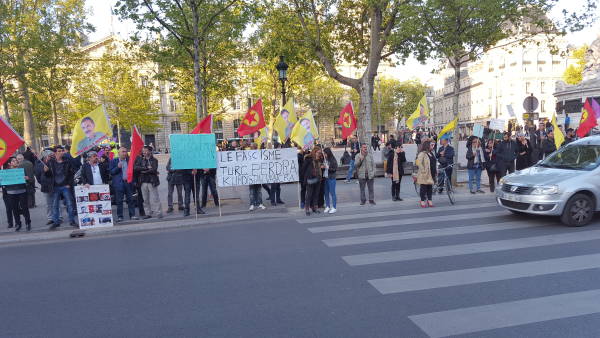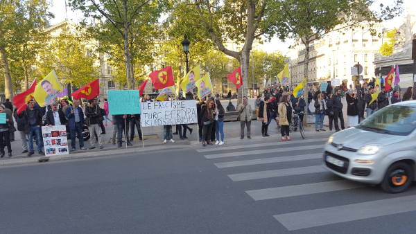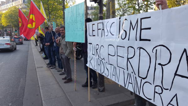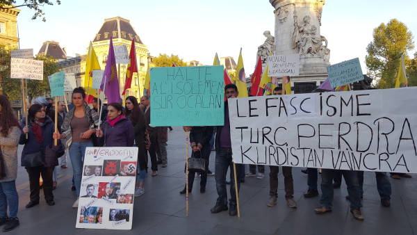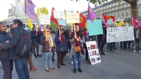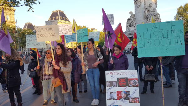 Fransa Demokratik Kürt Konseyi (CDK-F) ve Fransa Kadın Hayır Platformu öncülüğünde saat 19.00'da Republique Meydanı’nda yapılan eylemde, ‘Türk faşizmi kaybetti, Kürdistan kazandı’ ‘Öcalan üzerinde uygulanan tecride son verin’ yazılı pankartlar açıldı.